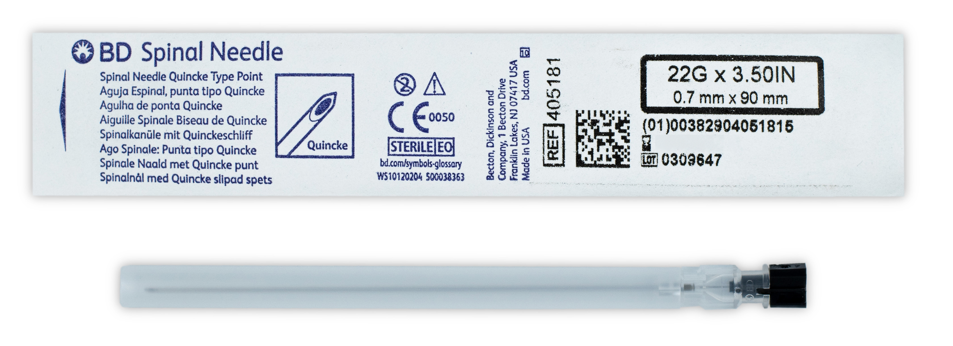 AGUJA ESPINAL QUINCKE 22G X 3 1/2 BD