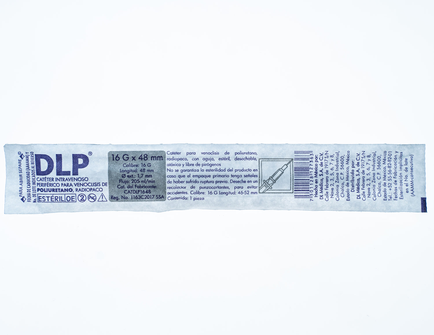 El catéter para venoclisis de poliuretano radiopaco con aguja DLP es un catéter intravenoso periférico indicado para su uso en venoclisis con la administración de líquidos o nutrientes así como medicamentos que no se pueden introducir al organismo por vía oral, administración de sangre y productos hemoderivados de ella, administración de sedantes o analgésicos destinados a aumentar su nivel de comodidad durante los procesos hospitalarios o ambulatorios para un solo uso.