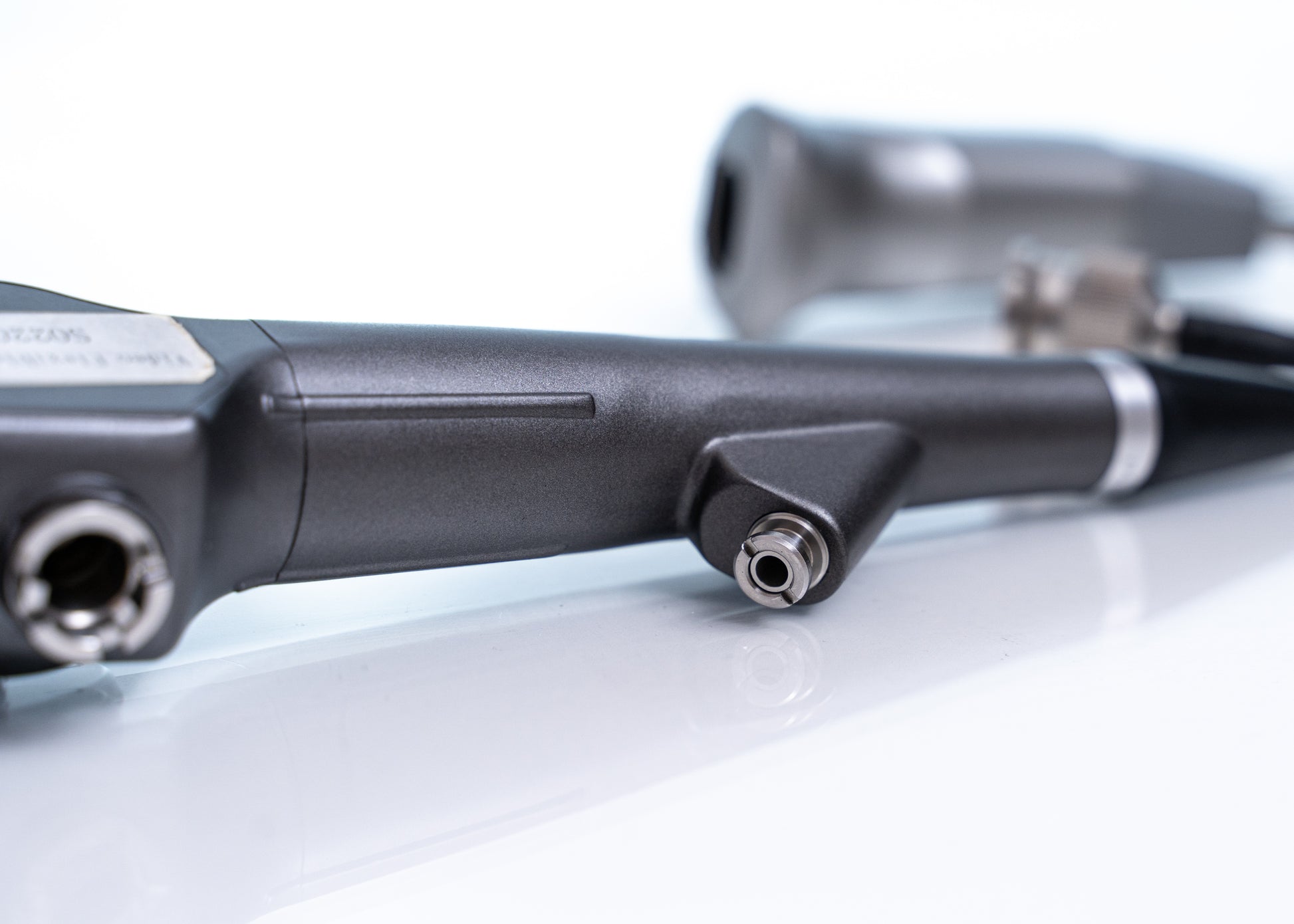 • Un Mango de Videolaringoscopio flexible con canal de trabajo