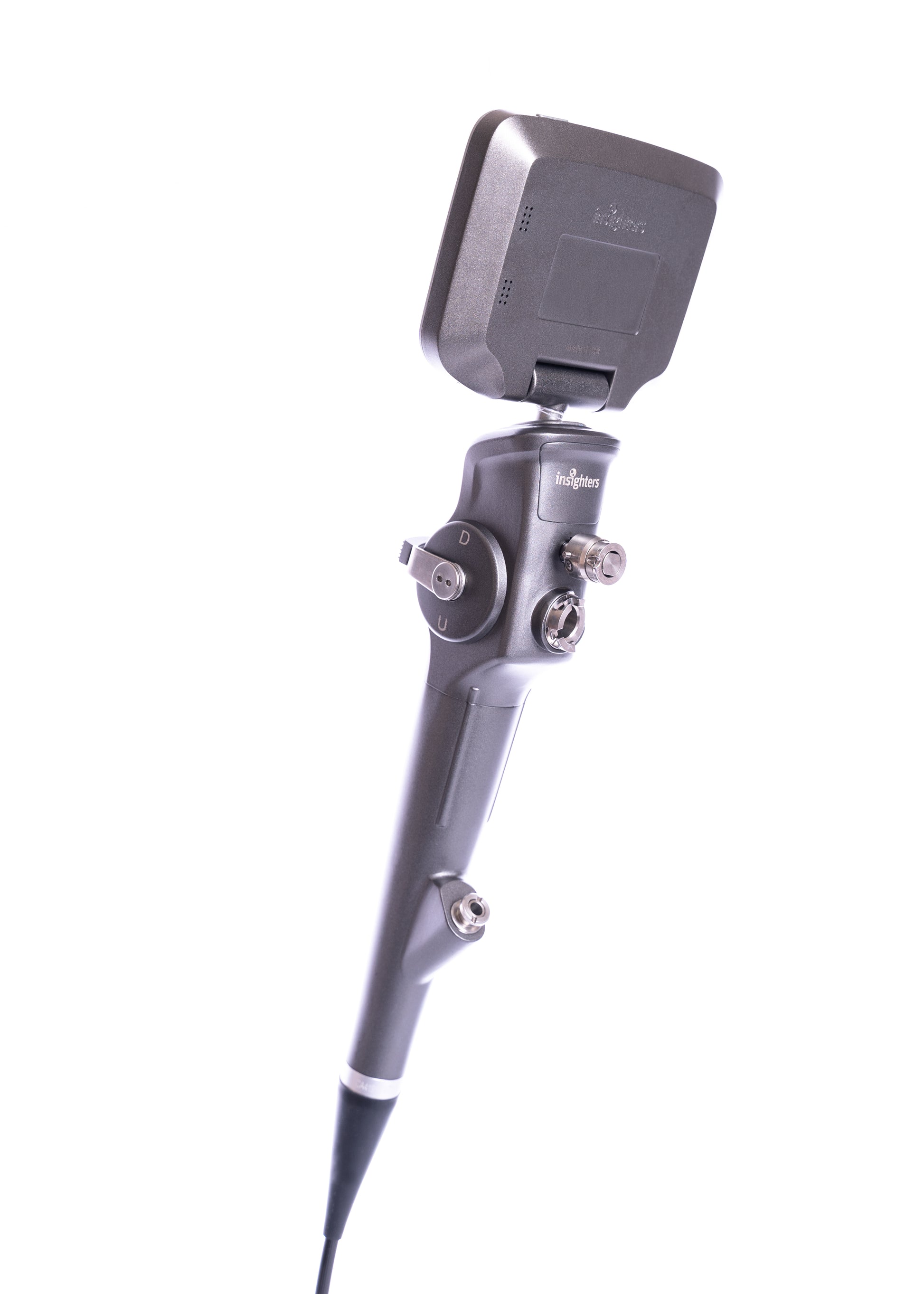 El producto consiste en la unidad como tal: mango flexible con canal de trabajo, verificador de fugas, cepillo para limpiar, tubería de drenado de 3 vías y adaptador AC. El mango de paso puede montarse con el equipo respectivo. Videolaringoscopio Flexible Insighters, Modelo iS3-C Registro Sanitario 1115E2023 SSA.