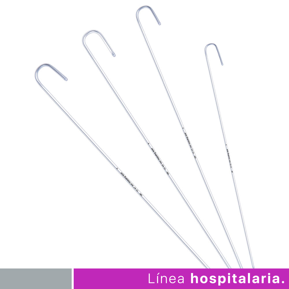 El Estilete de intubación es una unidad maleable de aluminio con cubierta de PVC que tiene extremos romos para reducir el riesgo de trauma si el estilete llegara a extenderse más allá de la punta del tubo traqueal.
